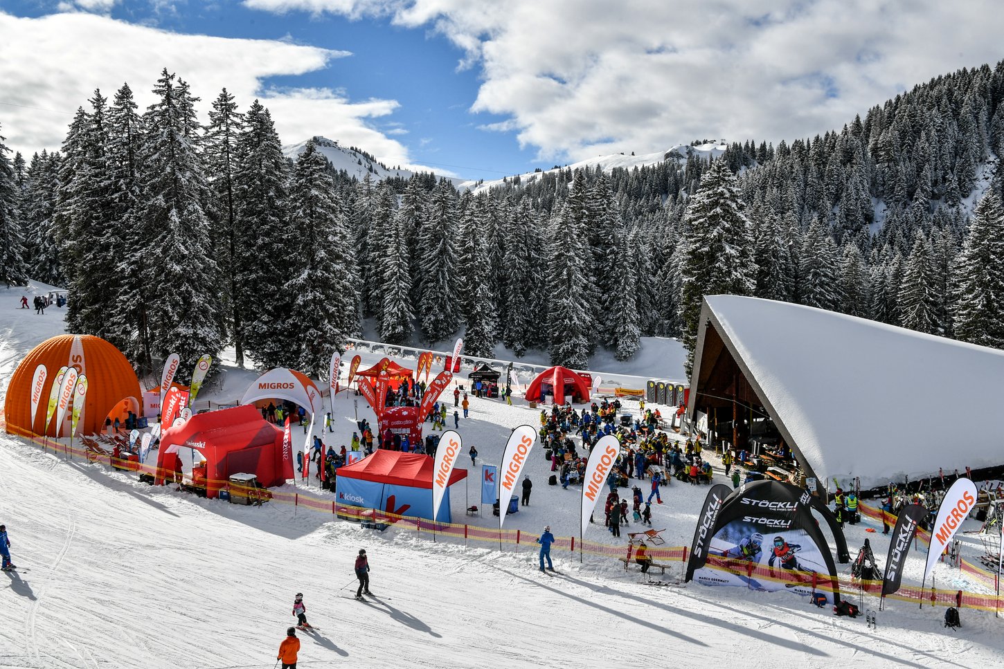 Nicht nur auf, sondern auch neben der Piste wartete ein spannendes Programm auf die skibegeisterten Kinder und Jugendlichen. Getreu dem Motto «Mehr als ein Skirennen» stand für die Teilnehmenden und ihre Angehörigen auch nach dem Renneinsatz der Spass im Vordergrund. Im Grand Prix Migros Village warteten Promotionsstände sowie unterhaltsame und abwechslungsreiche Spiele des Hauptsponsors Migros, der Co-Sponsoren Stöckli, BRACK.CH und k kiosk sowie der Suppliers Toko, Leki, Descente und Giro im Grand Prix Migros Village auf die jungen Sportlerinnen und Sportler und ihre Familien.