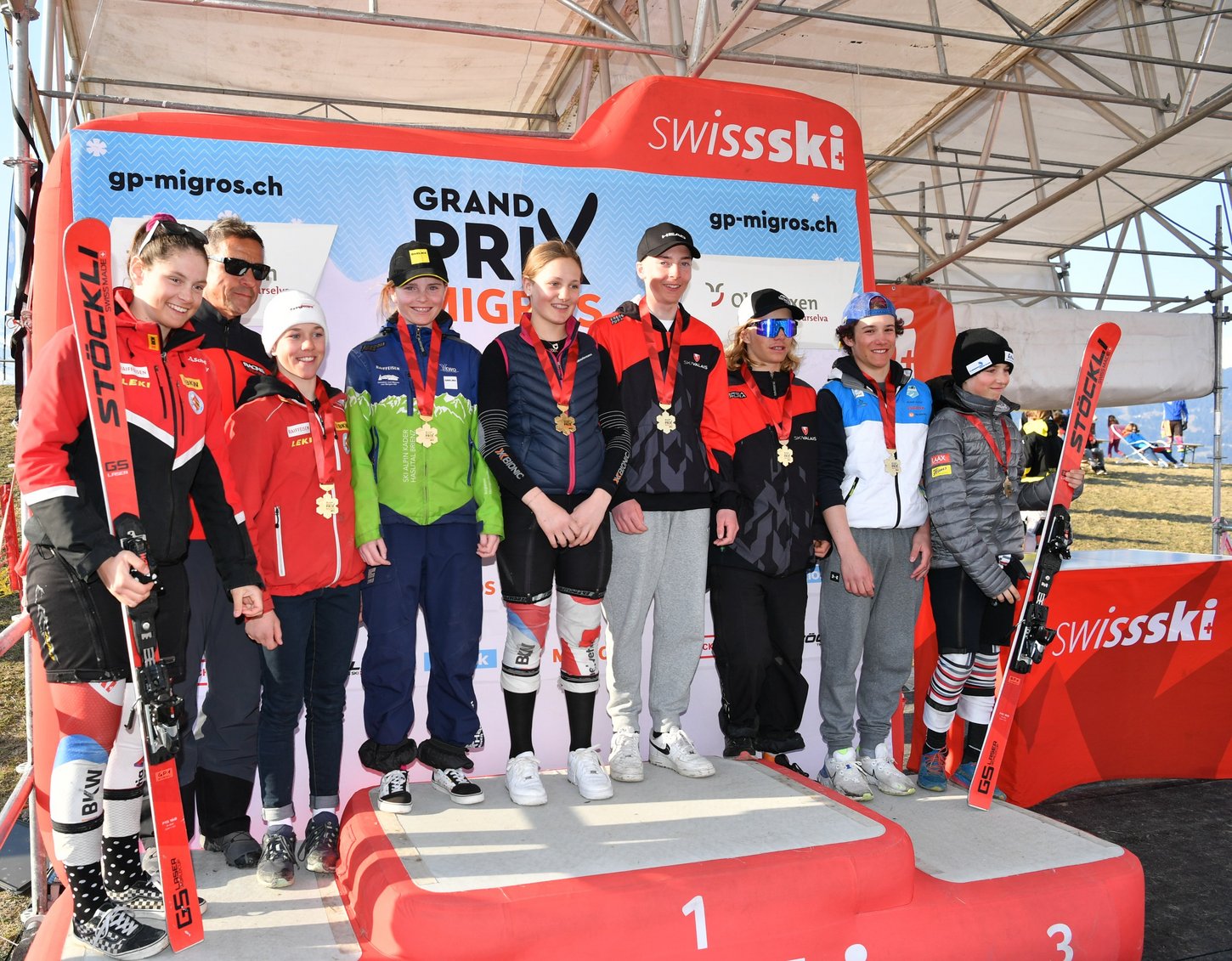 Die besten Zeiten auf der grossen Piste, dem Riesenslalom, fuhren nicht etwa die Ältesten, zeigten die 08er den 06ern doch den Meister respektive die Meisterin. So waren bei den Mädchen Anna Flatscher aus Mörschwil SG und bei den Knaben Igor Salvetti aus Silvaplana GR die Schnellsten, beide mit Jahrgang 2008. Auf der kleinen Piste waren die schnellsten Combi-Race-Läufe mit den 2010ern aber den ältesten Gestarteten vorbehalten. Die Beste bei den Mädchen war die Liechtensteinerin Malea Jäger, der Beste bei den Knaben Fynn Brand aus Lauenen bei Gstaad.