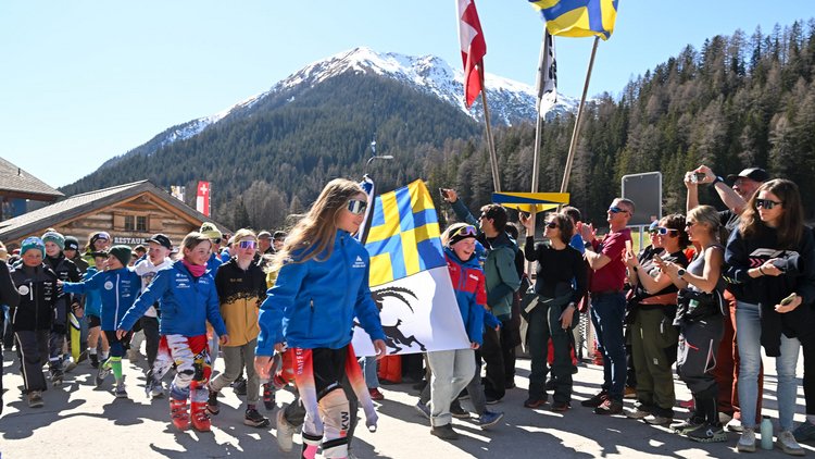 Am vergangenen Donnerstag ging es bei strahlendem Sonnenschein endlich los: Die ersten beiden Tage dienten den Qualifikantinnen und Qualifikanten, den Rennhang und die Piste auszutesten und sich somit optimal auf das Wettkampf-Wochenende vorzubereiten. Nach den beiden freien Trainingseinheiten folgte das nächste Highlight: Der traditionelle Kantonseinzug aller angemeldeten Delegationen, welcher mit dem Gastgeber-Kanton Graubünden begann und frenetisch bejubelt wurde. Unter den 23 vertretenen Kantonen stellte der Kanton Wallis die grösste Final-Delegation mit 136 Teilnehmenden, wohingegen der Kanton Thurgau beispielsweise nur einen Teilnehmer ins Finale schickte. Im Anschluss an den Einzug begrüsste Speaker Stefan Flury den Co-Präsidenten von Swiss-Ski, Peter Barandun, welcher inmitten unzähliger Kinder das Finale für offiziell eröffnet erklärte. Philipp Wilhelm, Landammann von Davos, wendete sich auch an das Publikum im Festzelt. Auch der einheimische Skistar Jasmine Flury motivierte die vielen Kinder und Jugendlichen. Die Speed-Fahrerin bewies ihr Können trotz Verletzung bei der Einbein-Challenge. Nach der Eröffnungsfeier erfüllte die Bündnerin unzählige Autogramm- und Selfie-Wünsche.
