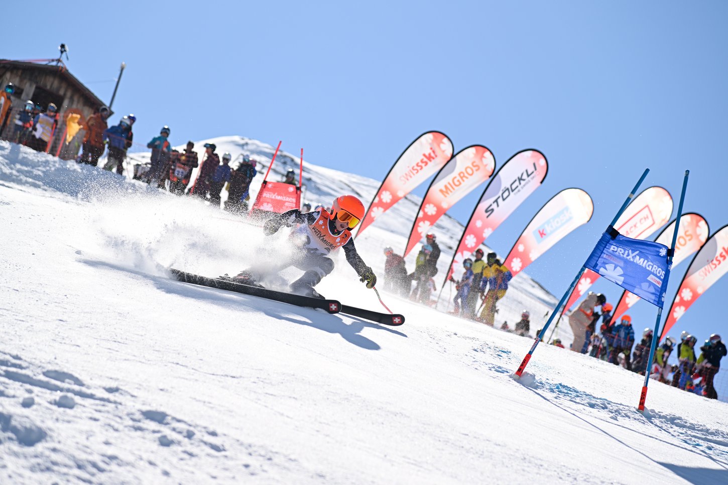 Der zweite Renntag brachte wiederum strahlenden Sonnenschein und perfekt präparierte Pisten mit sich. Die Helferinnen und Helfer hatten über Nacht wieder beste Arbeit geleistet, um den Jahrgängen 2009 bis 2013 im Combi Race und den Jüngeren (Jahrgänge 2012 bis 2017) im Riesenslalom beste Pisten zu bieten. Am Sonntag war der Himmel leicht bewölkt, was für sensationelle Bedingungen sorgte. Die eisige und pickelharte Piste stellte alle Fahrerinnen und Fahrer, insbesondere die Jüngsten, vor eine Herausforderung. Wiederum bot der Schweizer Alpin-Nachwuchs exzellente Leistungen. Die Live-Kommentatoren Sandro Viletta, ehemaliger Swiss-Ski-Athlet und Kombinations-Olympiasieger von 2014, und Christoph Boner kommentierten beide Rennen. Beide zeigten ihre Begeisterung über die tollen Leistungen, die die Athlet:innen am Berg vollführten. SRF-Kommentator Men Marugg kommentierte die Rennen am Sonntag live vor Ort. Da die Sonneneinstrahlung am zweiten Renntag nicht mehr so stark war, blieb die Piste bis zu den letzten Fahrerinnen und Fahrern in einem super Zustand. Einmal mehr zeigte das Grand-Prix-Migros-Finale, welches inoffiziell auch als Schweizer Meisterschaft auf Nachwuchs-Ebene gilt, dass viele junge Talente im Ski Alpin nachkommen und vielleicht in ein paar Jahren in der Weltcup-Elite mitmischen werden. Nach den erfolgreichen Rennen verteilte Simone Wild, A-Kader-Athletin, fleissig Autogramme im Swiss-Ski-Zelt im Village.